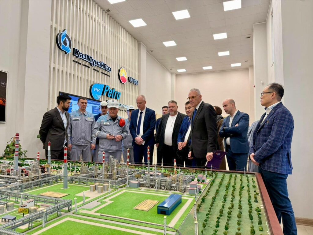 Сапар барысында, қонақтар техникалық қауіпсіздік бойынша нұсқамадан өткеннен кейін, кәсіпорын нысандарымен, мұнайды өңдеудің заманауи технологияларымен және зауытты әрі қарай жаңғырту жоспарларымен танысты.